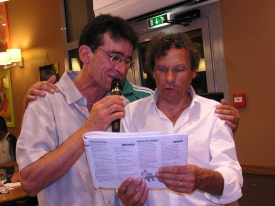 Roland Romeyer en duo avec Jo Patrick président de la section ont chanté "Le Lyon est mort ce soir ..."